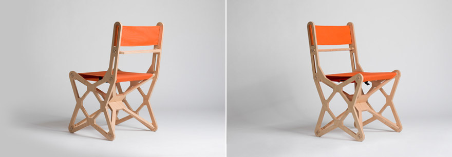 Turns into an artwork on the wall when not in use. This is a prefabricated shelter which would be shipped to a disastered area. It is another interesting idea i may utilize. The joints of the chair are an original design that provide strength and space reduction. Besides this, the design contributes to a circular economy.